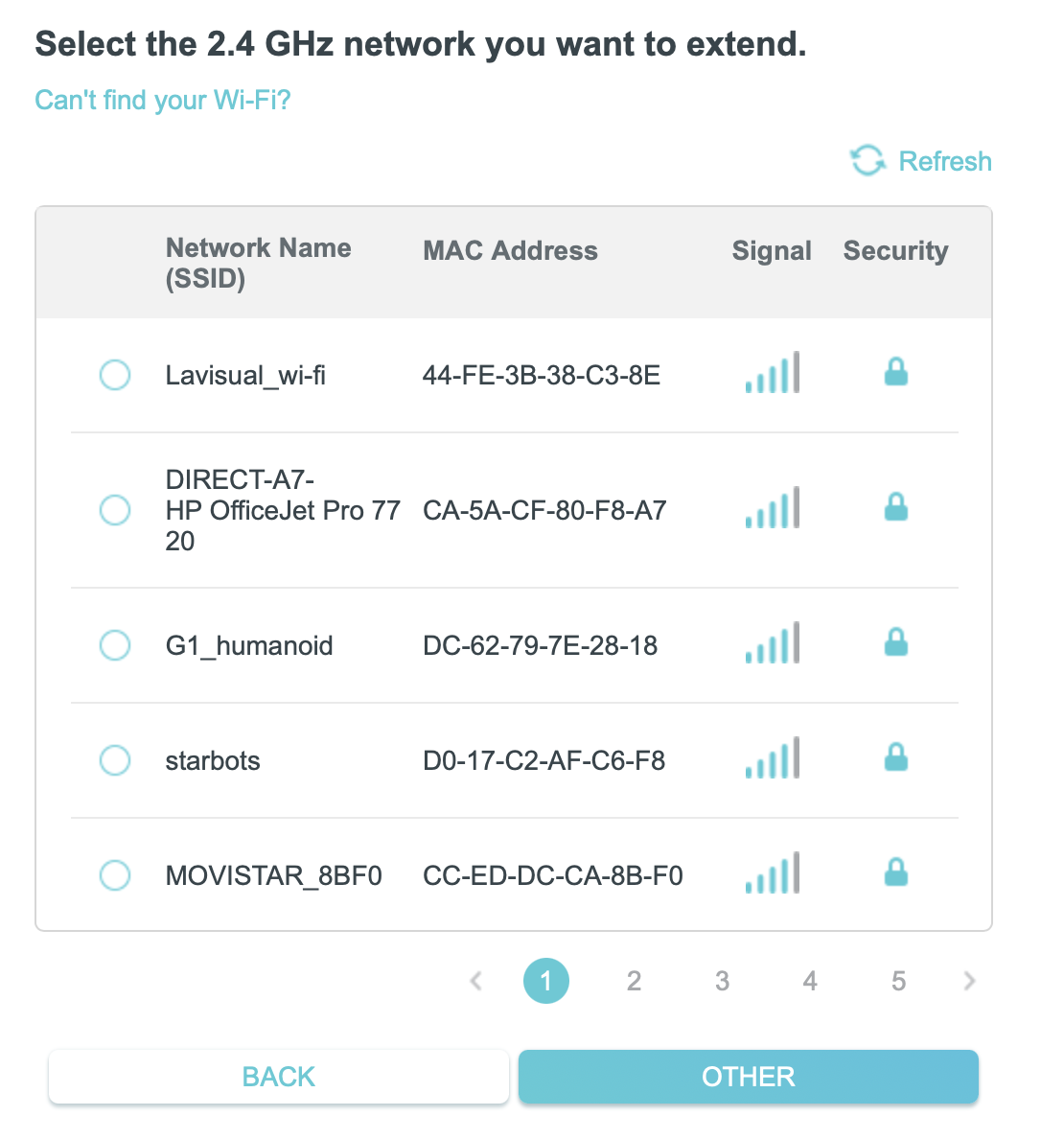 - Select the 2.4Ghz wifi you want to connect to (the one in your lab that provides Internet access), and configure appropriately (passwords and so on)