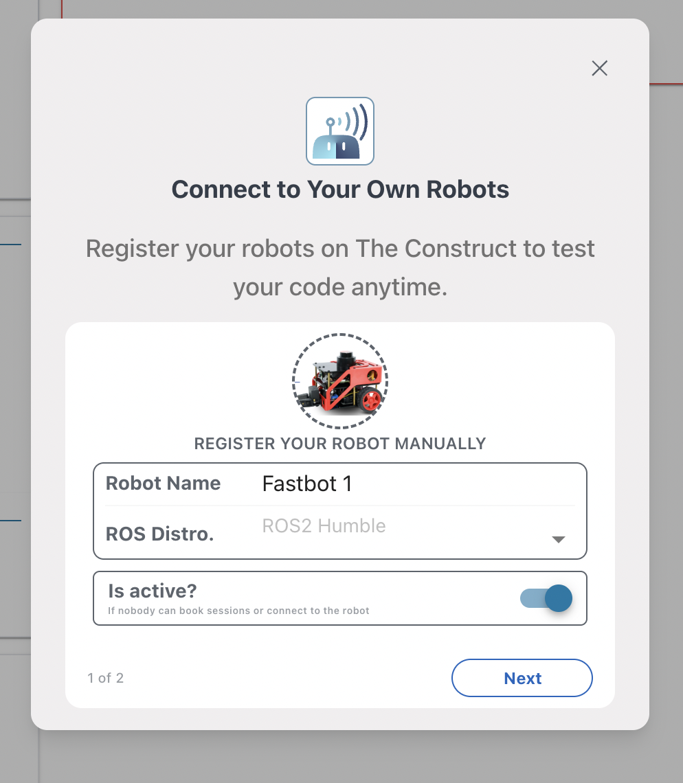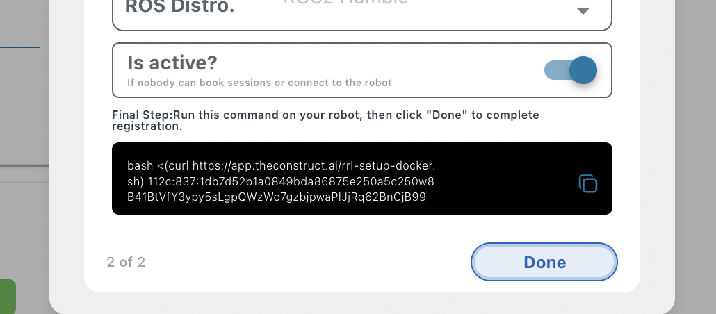 Now the first robot is fully registered in the lab and your students can access to it from a cloud project (rosject)
