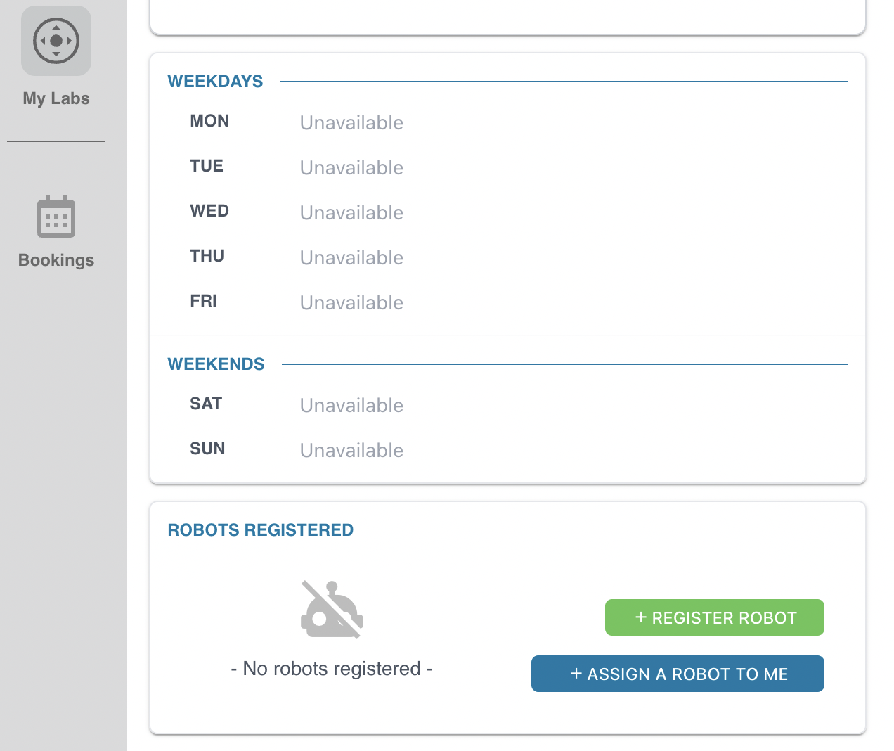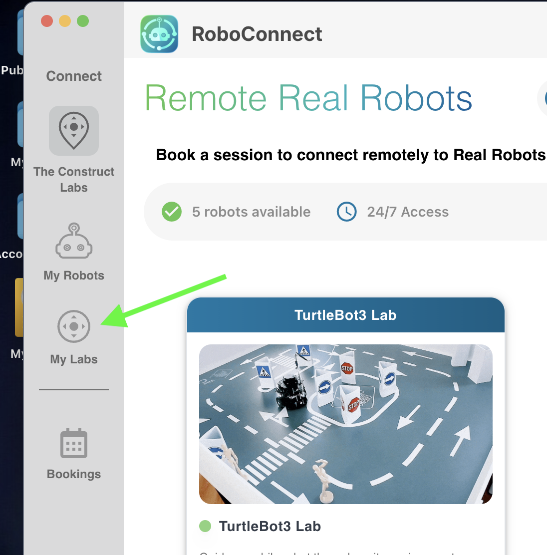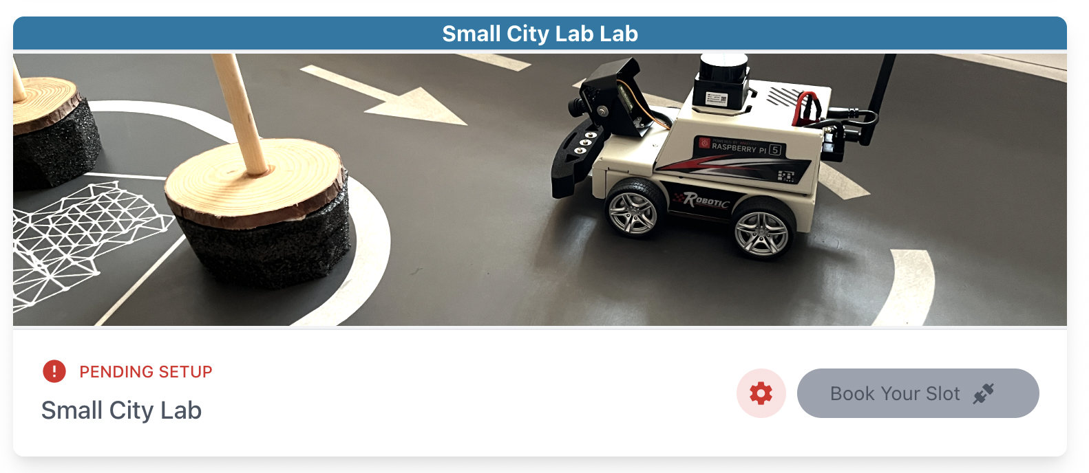 RobotConnect, click on theMy Labsand search on the list of your labs the one you just created. Then press thegear iconto configure the lab