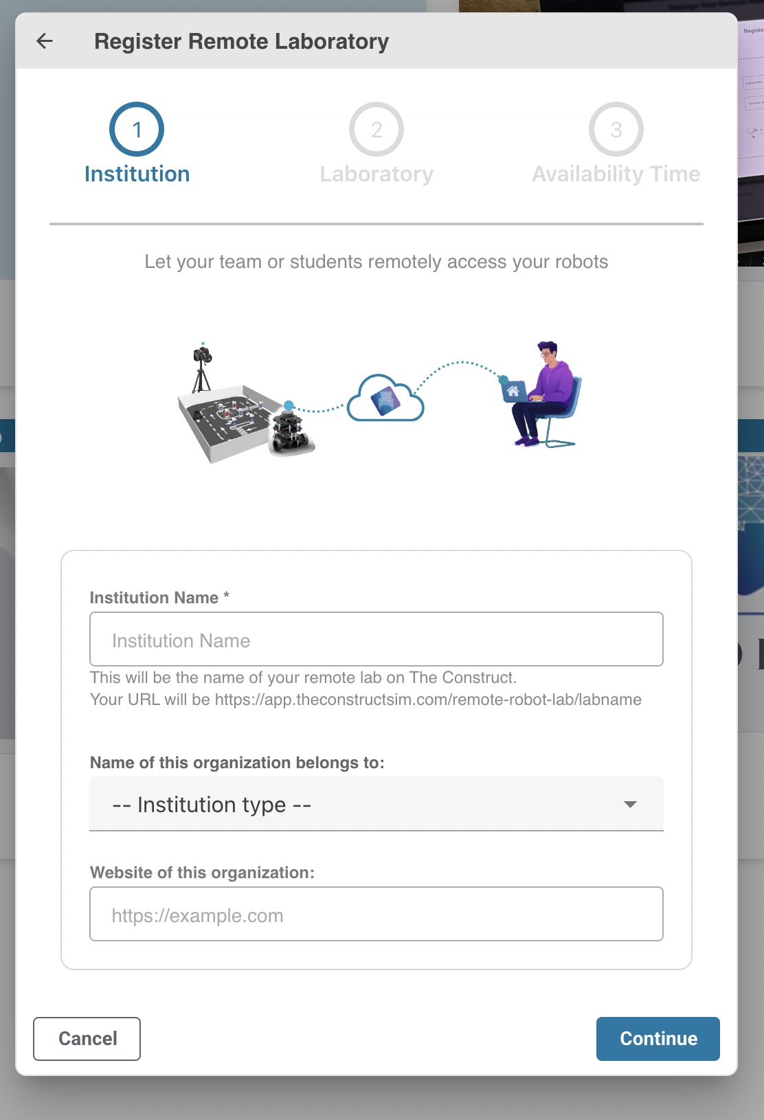 Only teachers can create a robot lab at the Robotics Learning Studio