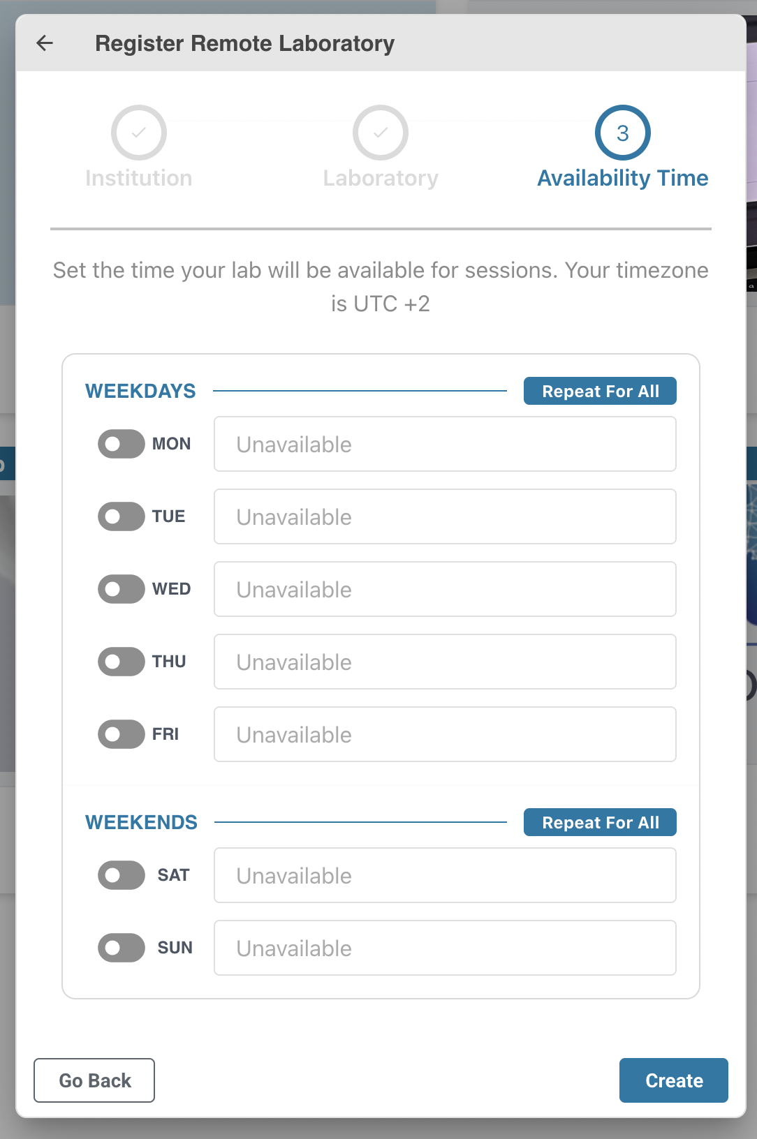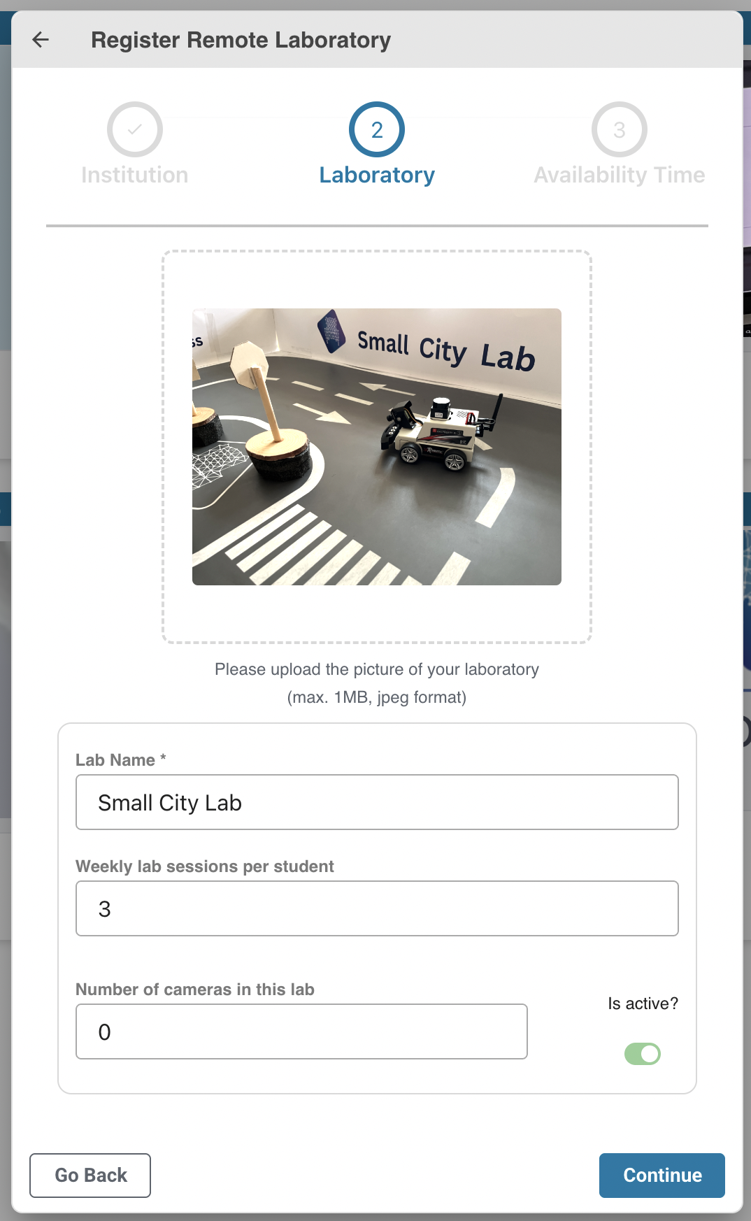 - Add a picture to identify the lab. Add a number of sessions for each student per week, and put zero as the number of cameras